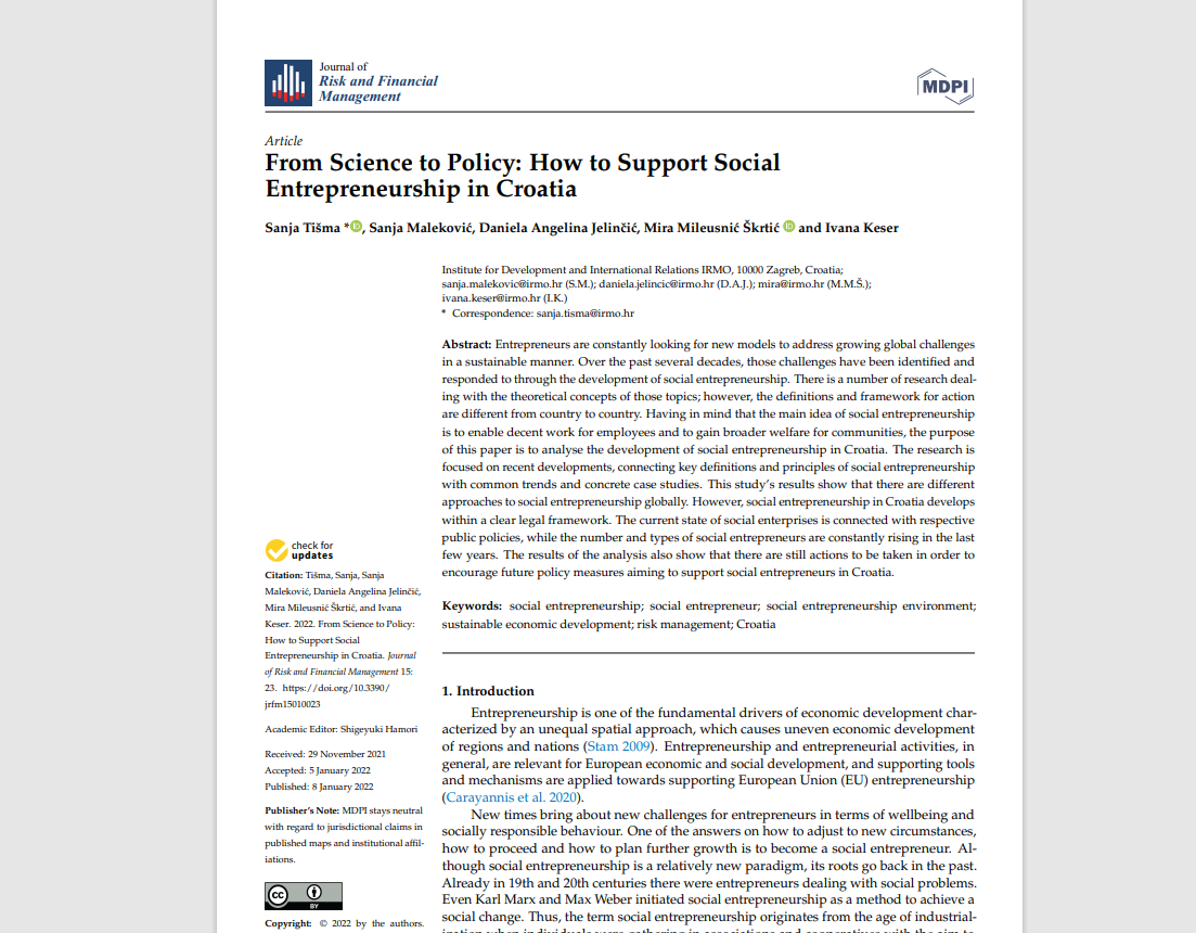 Rad su izradile dr.sc. Sanja Tišma, dr.sc. Sanja Maleković, dr.sc. Daniela Angelina Jelinčić, dr.sc. Ivana Keser te mr.sc Mira Mileusnić Škrtić s Instituta za razvoj i međunarodne odnose.